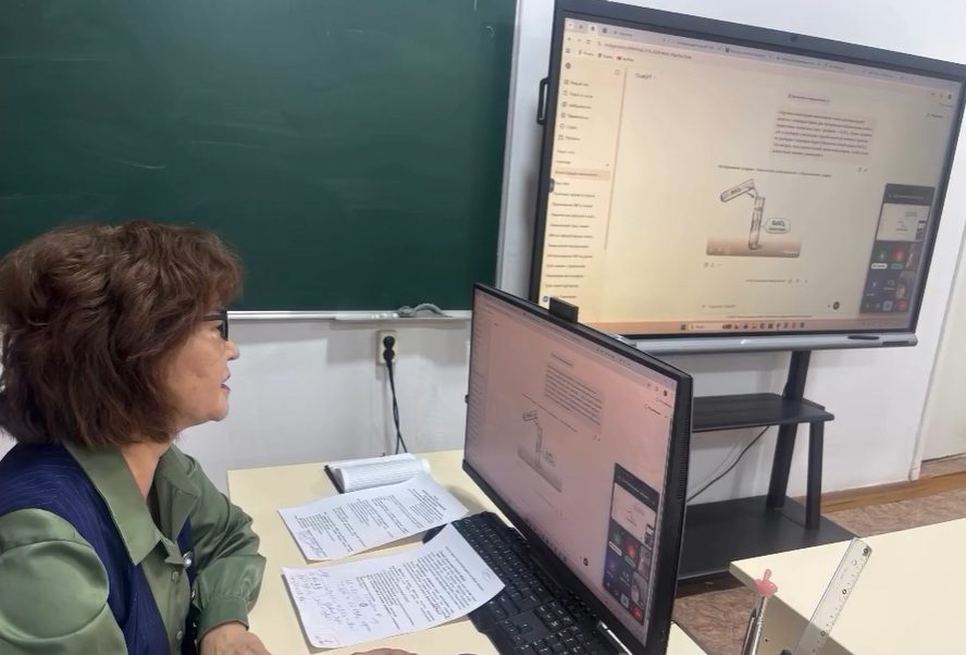 В рамках вебинара учитель химии КГУ «Школа-гимназия №1 города Щучинск» Тлемисова Шуга Омирзаковна представила выступление на тему «Применение технологий искусственного интеллекта при выполнении лабораторных работ на уроках химии».