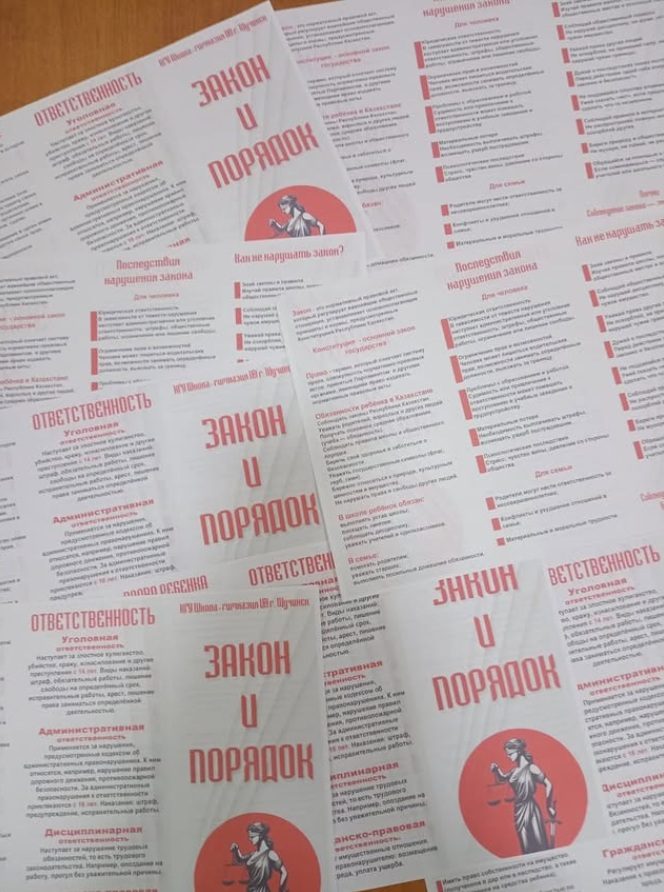 В рамках месячника “Закон и порядок” Единой программы воспитания “Адал азамат” 29 января 2026 г. учащиеся изготовили для распространения памятку “ Закон начинается с меня”
