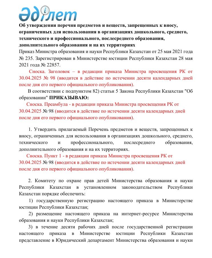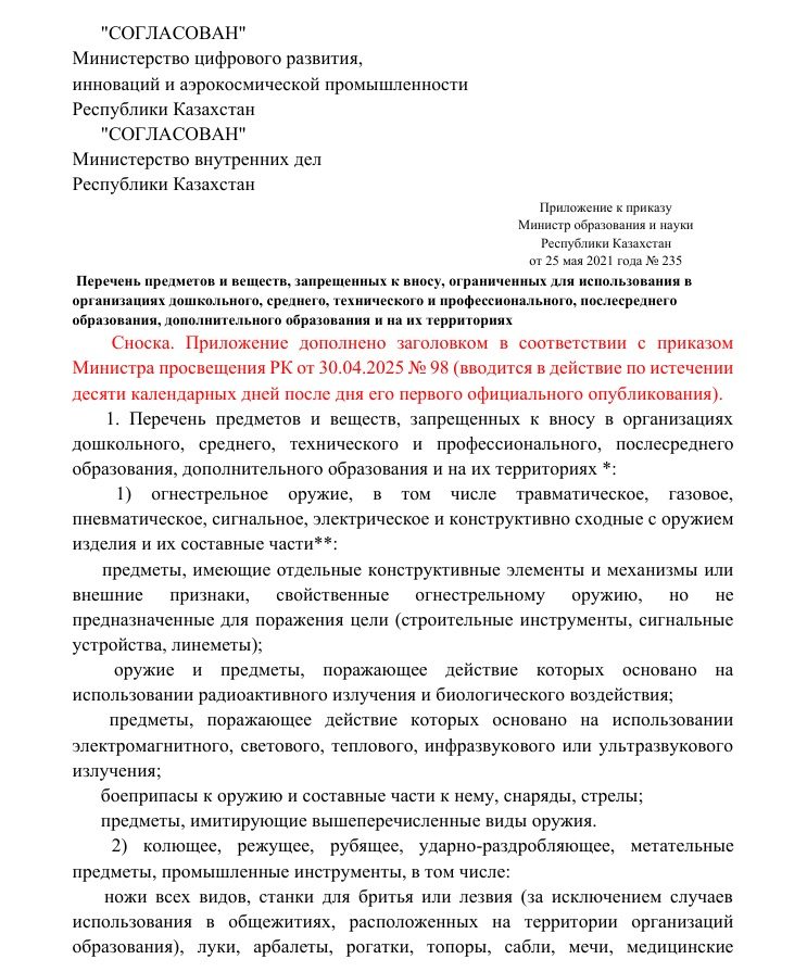 Перечень предметов и веществ, запрещенных к вносу