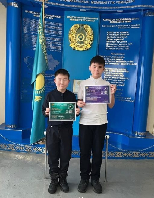 В рамках Декады казахского и русского языков учащиеся 6 «В» класса Сулейменов Султан и Беккожин Дидар приняли участие в республиканской олимпиаде «Ақбота».