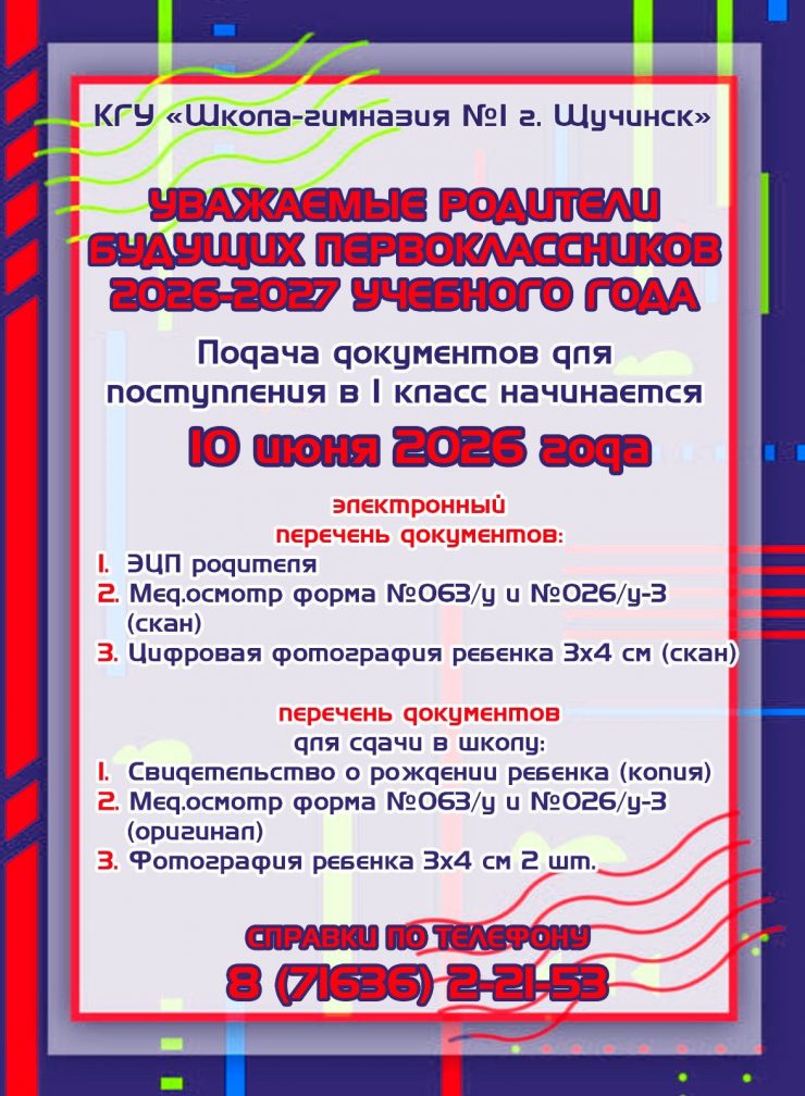 Құрметті 2026-2027 Оқу жылының болашақ бірінші сынып оқушыларының ата-аналары